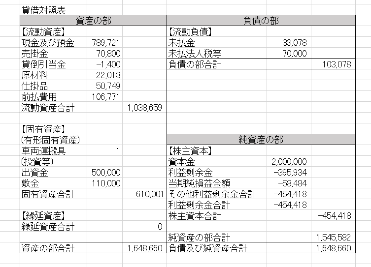 貸借対照表(第4期 2021年8月ー2022年7月)